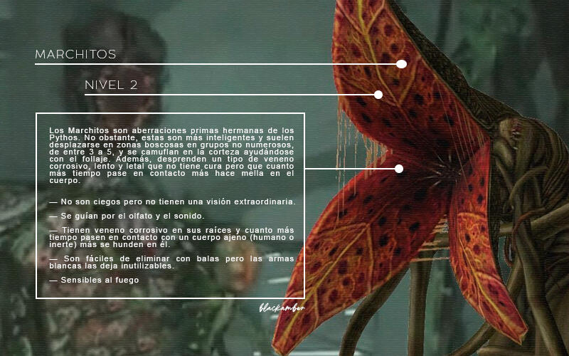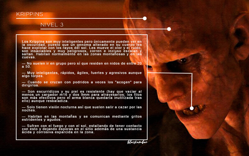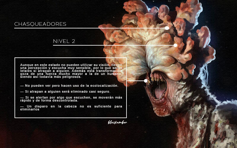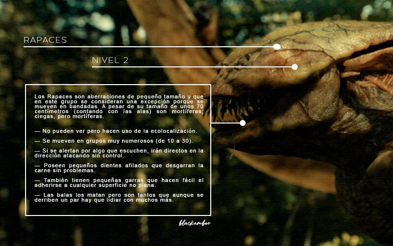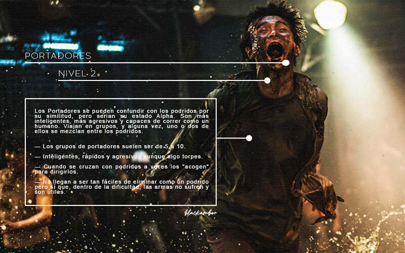 NIVEL 2. No sería raro encontrarlos en lugares cerrados y deshabitados o entremezclados en alguna horda. Son bastante comunes pero no son tan numerosos. Su índice de peligrosidad es elevado y pueden llegar a ser letales si no se tiene cuidado. Rapaces, Chasqueadores, Portadores, Marchitos